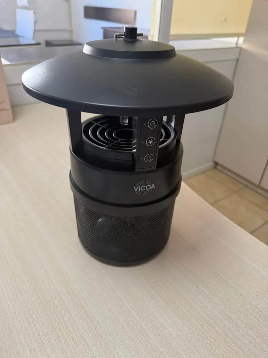 Vıcoa marka, VOM-01 model, Sinek Böcek Öldürücü. Sinek ve uçan böceği içerisinde bulunan UV led ışık ile kendine çekmekte olup alt kısmında bulunan 12 volt elektrikle çalışan pervanesi yardımı ile hava akışı oluşturarak en alt kısmında bulunan hazneye hapsetmektedir. Dış mekanda 60 m² ye kadar koruma sağlamakta olup zamanlayıcı (8/12 saat) ve gece/gündüz düğmesi mevcuttur.